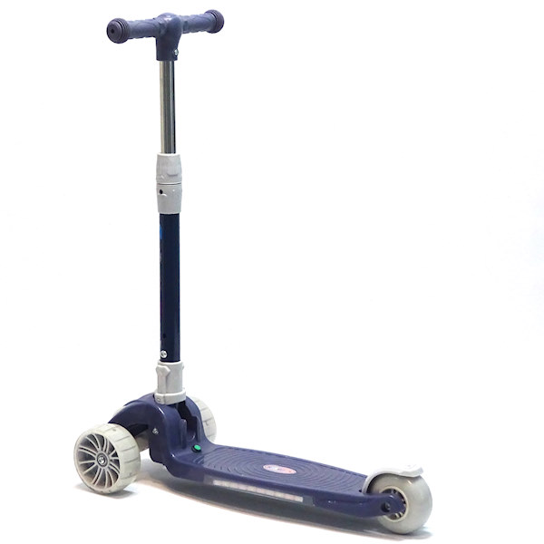 Квалитетен детски тротинет, кормило на склопување, постолје со ЛЕД и музика и 2 предни и дупли задни светлечки тркала.
