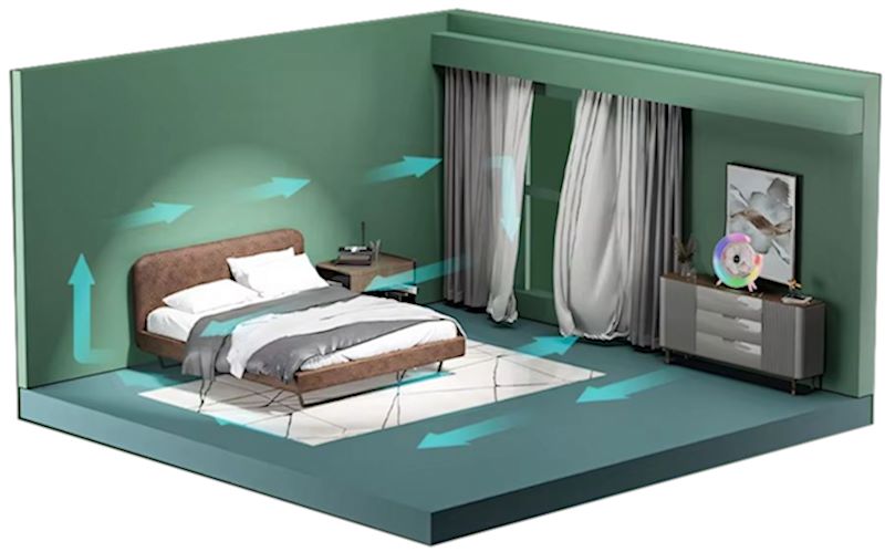 Благодарение на иновативниот дизајн може да го ротирате за 180 степени и да го поставите токму онака како што најмногу ви одговара. А може и да го користите во комбинација со вашиот клима уред, за да го пренасочите ладниот воздух насекаде во домот.